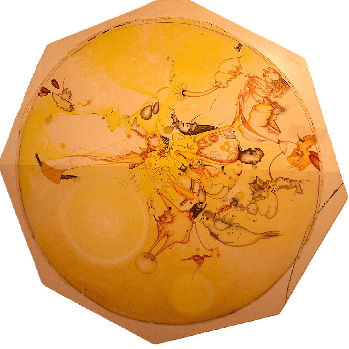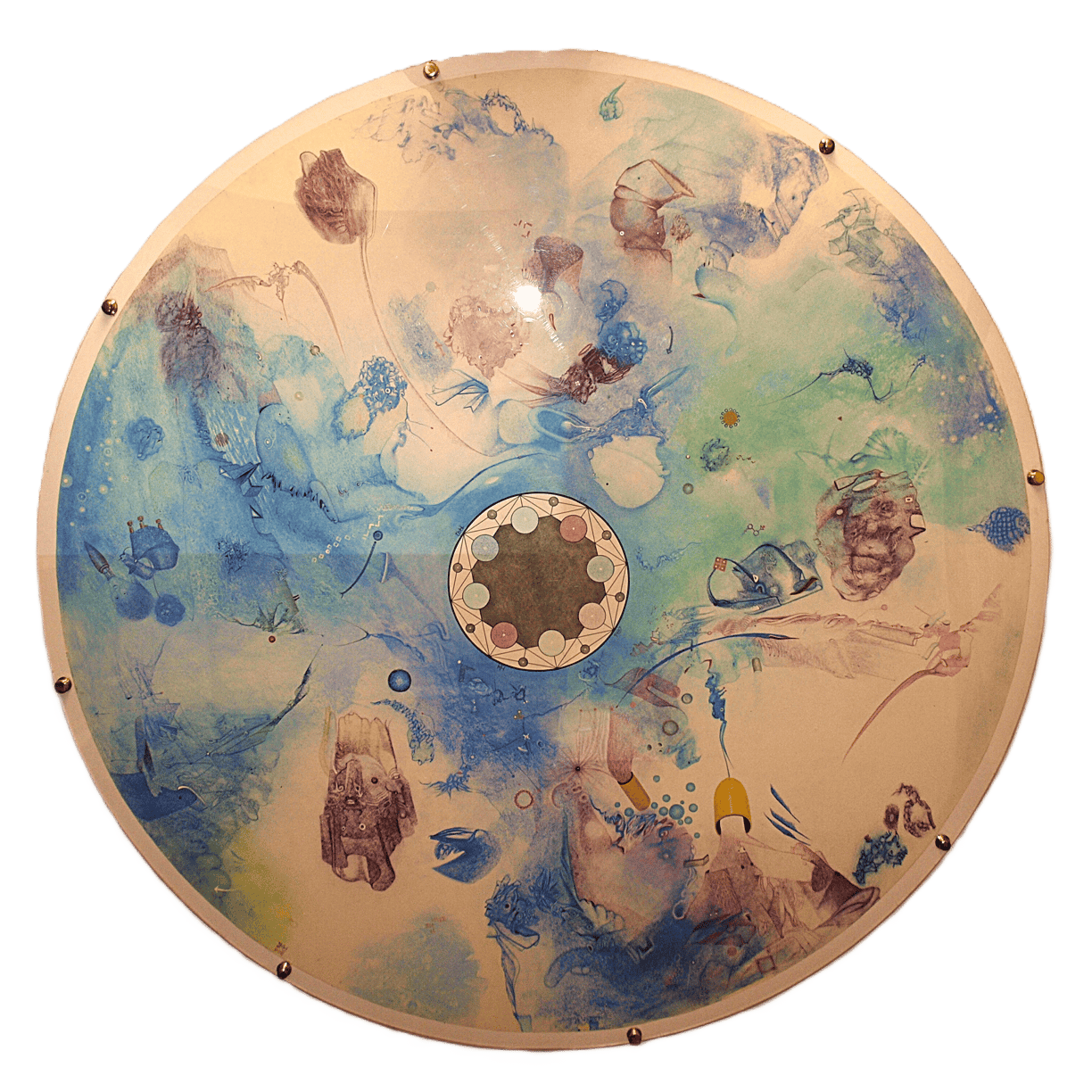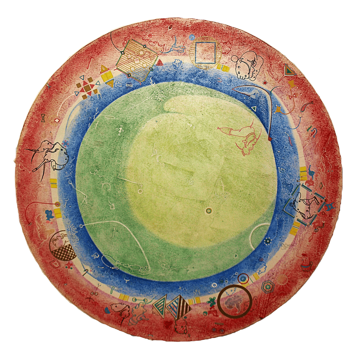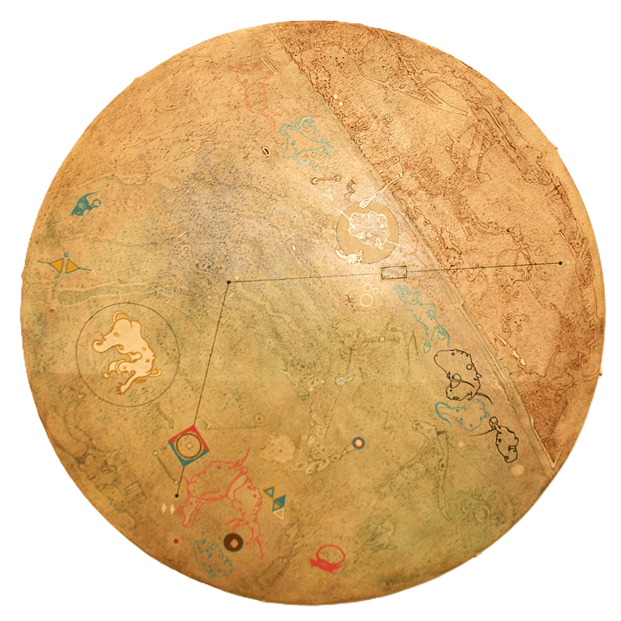 wodurch die darauf gemalten Bilder ebenfalls weder Anfang noch Ende haben. Somit laden sie den Betrachter zu einem endlosen Spaziergang ein.