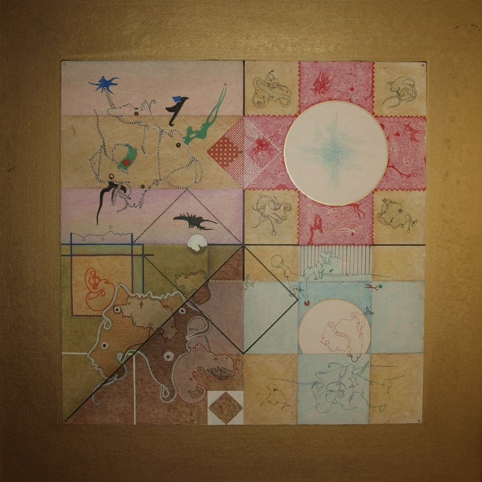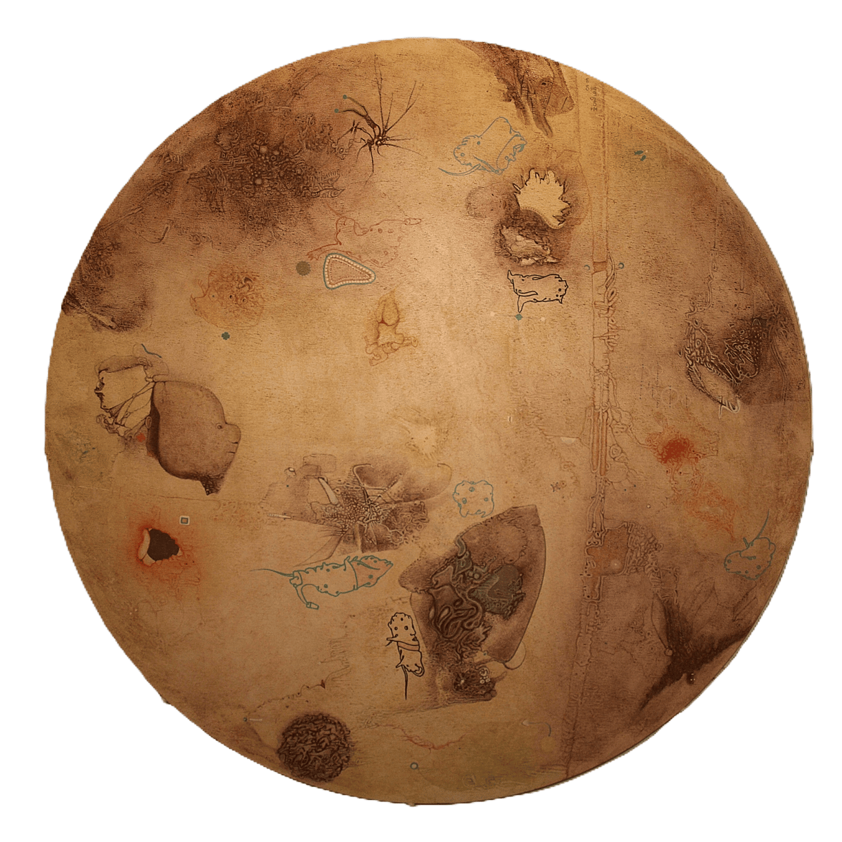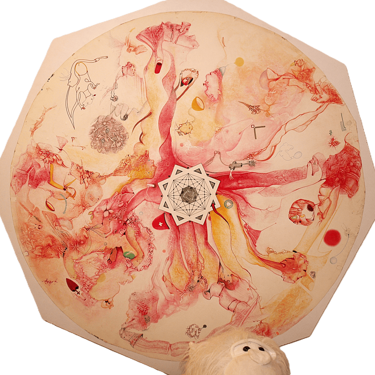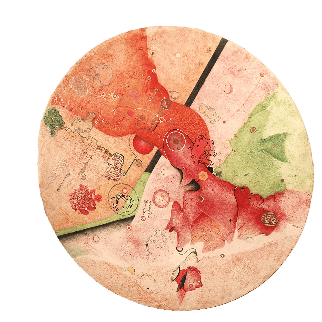 wodurch die darauf gemalten Bilder ebenfalls weder Anfang noch Ende haben. Somit laden sie den Betrachter zu einem endlosen Spaziergang ein.