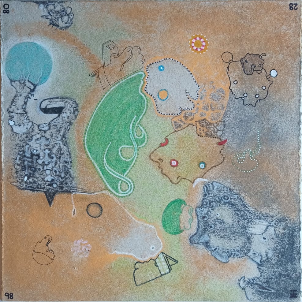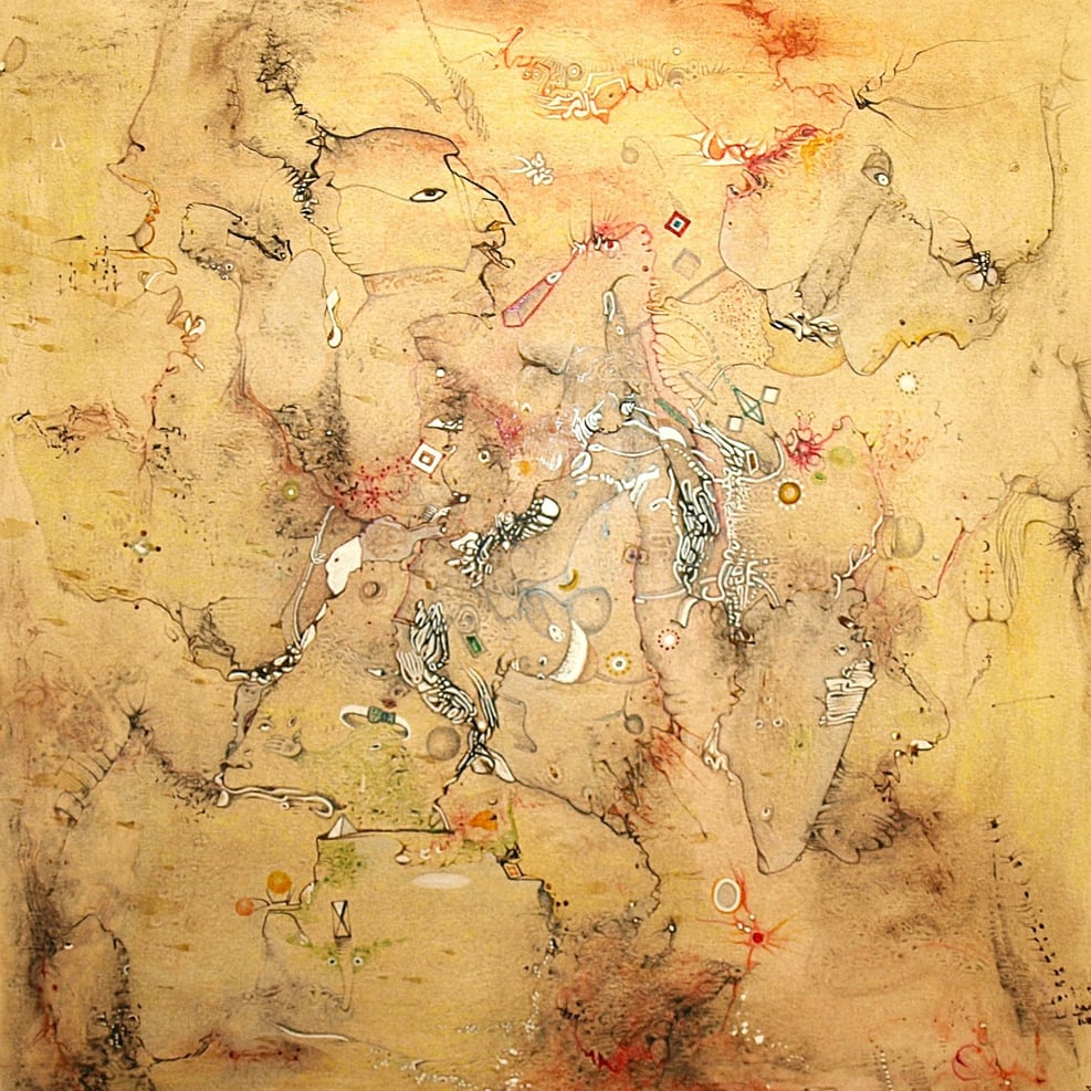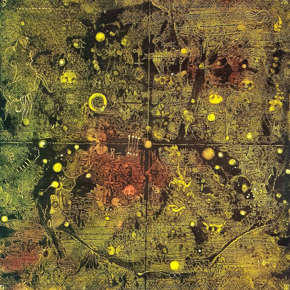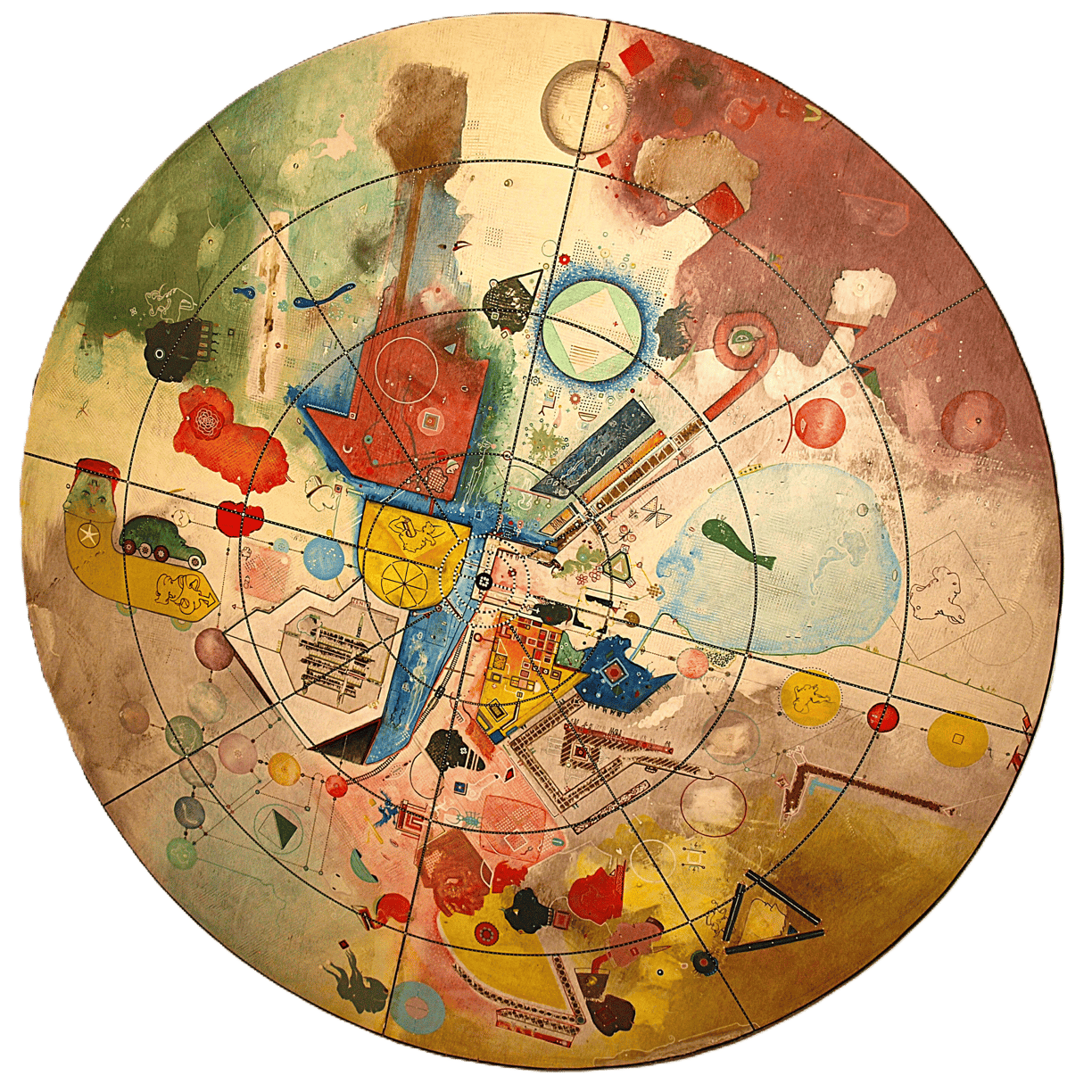 wodurch die darauf gemalten Bilder ebenfalls weder Anfang noch Ende haben. Somit laden sie den Betrachter zu einem endlosen Spaziergang ein.